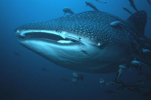 Siamo al terzo giorno, ma è come se fossimo sempre stati qui, Charles e Allain ci fanno sentire ospiti graditissimi… La prima immersione è al French Kiss, nome esotico-erotico per indicare un punto in mezzo al mare, sperduto nel niente, che solo Charles conosce. Il briefing è preciso, si tratta di una immersione impegnativa e ci possono essere correnti molto forti. Scendiamo lungo la cima dell’ancora, fortunatamente la corrente non è molto forte. Il pinnacolo comincia ad essere visibile solo arrivati ad una profondità di –15 metri. Un banco di chirurghi unicorno ci viene incontro e passa oltre, continuiamo a scendere, sul fondo troviamo tre grandi trigoni che cercano di risalire la corrente per ripararsi dietro le roccie. Sotto di noi in un anfiteatro di granito vediamo degli squali pinna bianca che si muovono in cerchio. Veniamo circondati da un banco di fucilieri inseguiti da altrettanti tonni arcobaleno, nome accattivante per indicare un carangide la cui forma lo fa assomigliare ad un tonno. Il banco scompare nel nulla lasciando spazio ad un gruppo di 5 squali grigi che sembrano arrivati dal niente. Ci fermiamo e restiamo in attesa quasi col fiato sospeso, cominciano pian piano ad abituarsi alla nostra presenza e riusciamo persino a fare delle foto ravvicinate.