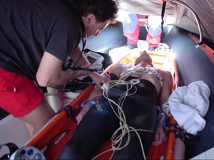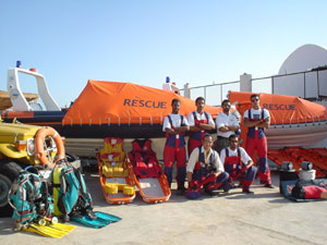 S.Halawa: – Disponiamo di tre gommoni da 6 mt. a chiglia rigida inaffondabile, con 5 camere d’aria. Ogni imbarcazione è equipaggiata con defibrillatore, una barella agganciabile dagli elicotteri, air splint per fratture, aspiratore, un kit O2 DAN con erogatore MTV 100, un kit MFA completo, e tutte le dotazioni di navigazione standard che includono anche: visori notturni, VHF, bussola, GPS, chart plotter, telefoni cellulari e satellitari. Le nostre imbarcazioni possono raggiungere i 42 nodi e portare a bordo 170 litri di carburante, più 90 di riserva. Sono mezzi completamente attrezzati per una MEDEVAC (Evacuazione Medica), l’equivalente marino di un’ambulanza (ICU) attrezzata per Cure Intensive. I tre membri d’equipaggio per imbarcazione sono qualificati ed addestrati secondo i migliori standards internazionali. Per la ricerca di dispersi in mare possiamo chiedere l’appoggio ed il coordinamento dell’elicottero dell’MFO (Osservatori delle Forze Multinazionali). Il nostro unico limite è il mare forza 6. –