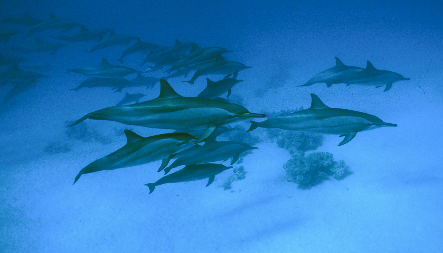 Un esempio su tutti: Mar Rosso, laguna di Shaab Ali. Un branco (è il termine giusto, trattandosi di mammiferi) di delfini (Stenella longirostris) nel tardo pomeriggio entra per riposare dopo la caccia in una laguna, dove sovente interagisce con i sub presenti. In presenza di delfini, animali amichevoli ma estremamente sospettosi, è meglio non avere bombole. Ci eviteranno di fare rumore, di intrometterci nell’ambiente con il nostro armamentario di oggetti metallici e di bolle d’aria. Se siamo armati solo di custodia fotografica, anche i delfini si accorgeranno della differenza e ci dedicheranno più volentieri le loro attenzioni, posando per noi da vicino e continuando a impegnarsi nelle loro normali attività.