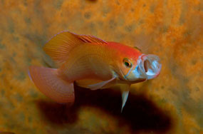 A sinistra. La bocca smisurata del pesce mascella Opistognathus sp. è utilizzata anche dal maschio per incubare le uova.