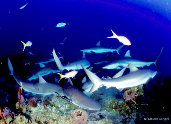 Tra gli anfratti trovano riparo numerosissimi pesci di barriera, barracuda, tartarughe, cernie e aquile di mare mentre a maggiori profondità si avranno gli incontri più emozionanti con i vari tipi di squalo: martello, toro, limone, seta e persino il grande ed innocuo squalo balena.