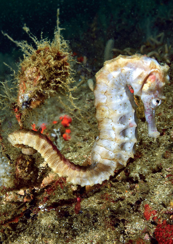 Purtroppo l’acqua era veramente torbida perché la secca appoggia su un fondale fangoso e la corrente, in quella circostanza, sollevava il limo. A trenta metri vive un bellissimo cavalluccio marino bianco piuttosto avvezzo a farsi fotografare. Sul sommo abbiamo avvistato una murena leopardo intanata e numerosi alcionari. Alla fine dell’immersione si lancia il “cazzillo” e immediatamente i ragazzi del gommone arrivano a recuperarvi; sono in gamba e molto attenti.