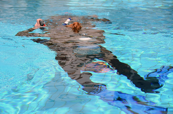 cioè galleggiare a pancia all’aria sulla superficie dell’acqua con il GAV gonfio