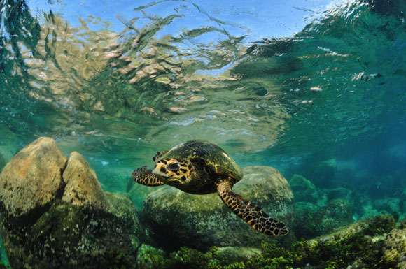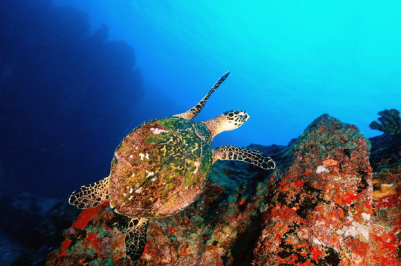 sono dalle tartarughe che staccano spugne e coralli con il potente becco. Nelle