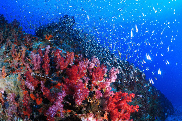e battuta dalle correnti oceaniche, sono spesso ricoperte di coralli molli e