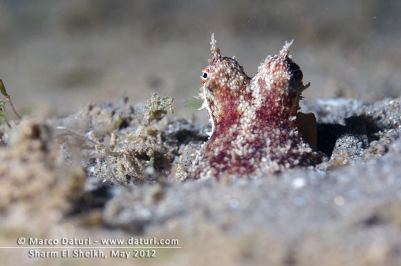 Un piccolo polpo si nasconde tra le alghe e timidamente ogni tanto esce per fare qualche passo per poi tornare a nascondersi dietro a qualche riparo. Non è solo, a pochi metri scorgiamo un suo simile e un paio di piccole seppioline quasi completamente seppellite dalla sabbia da cui lasciano spuntare solo gli occhi. Abbiamo fatto pochi metri e già abbiamo fatto molti incontri e tantissimi altri ne faremo per tutta la durata dell’immersione.