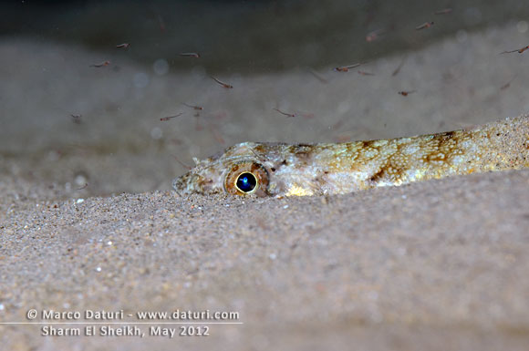 Poche pinneggiate e una splendida tartaruga finisce sotto i nostri deboli riflettori, sembra un po’ abbioccata e si lascia avvicinare senza timore. Dopo qualche minuto trascorso con lei scendiamo sul fondale sabbioso a pochi metri di profondità, un habitat che all’occhio meno attento può ricordare il deserto dietro la città ma che in realtà è ricco di piccoli abitanti che di giorno se ne stanno rintanati per sfuggire ai predatori e che invece ora, con la notte, escono per nutrirsi.