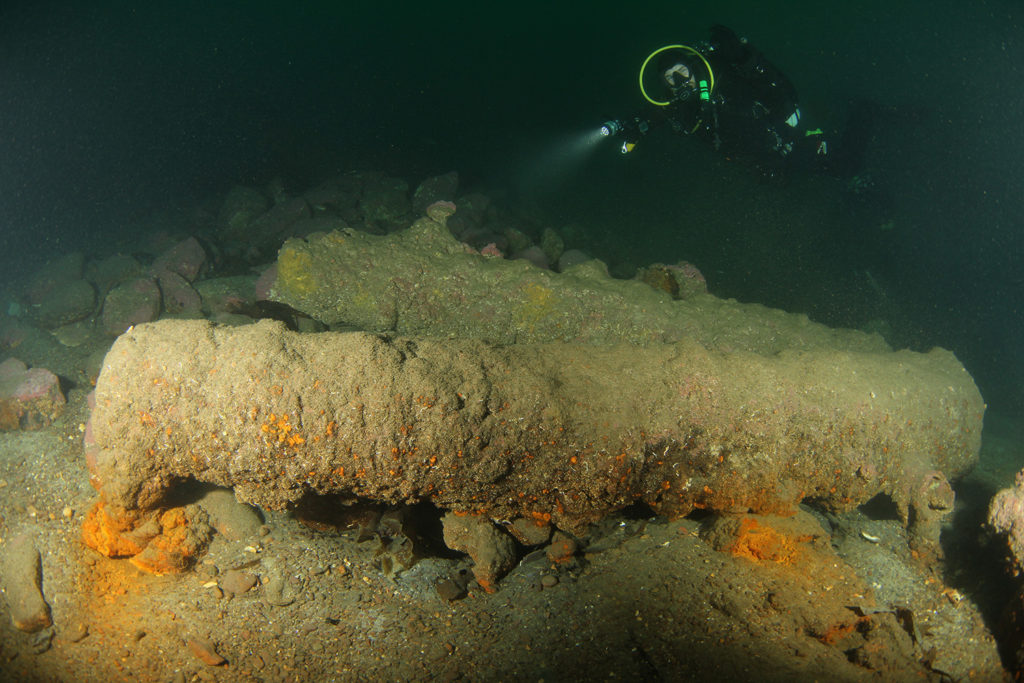 L’euforia era altissima pensando a cosa si potesse celare tra i resti della nave. Durante la perlustrazione, vennero ritrovate diverse munizione erose dal tempo e nelle immersioni successive vicino allo scafo della fregata ritrovammo un cumulo di materiale rugginoso costituito da bombe di 30cm di diametro e svariate granate vecchie almeno di 300 anni. Fino al colpo di scena: il ritrovamento sul fondale dei cannoni ricoperti dal sedimento. Un’ emozione unica vedere un vascello con così tanti armamenti a bordo.