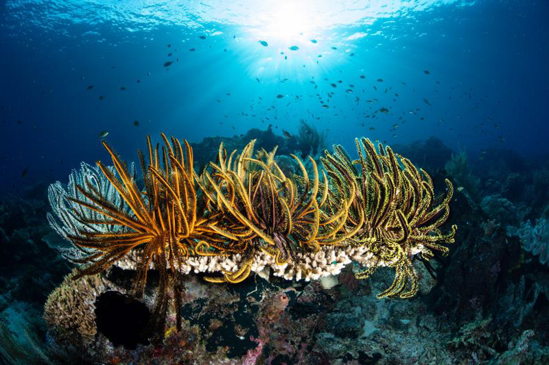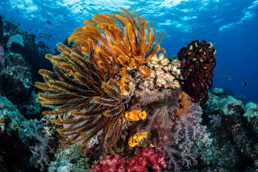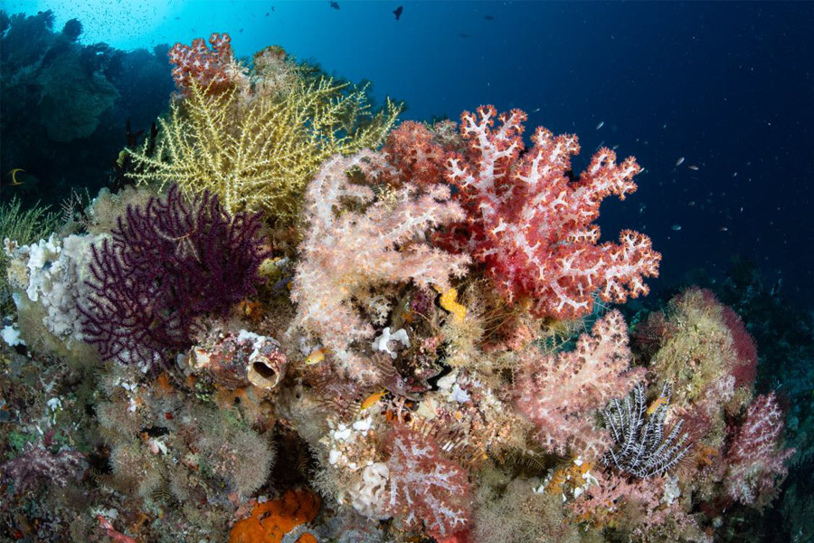 Raja Ampat è universalmente conosciuta come “Il cuore del triangolo dei coralli”, per la sua ricchezza senza pari, tra cui: 540 specie di coralli duri (oltre il 75% delle specie di coralli del mondo); 60 tipi di gamberi; 1.070 tipi di pesci di barriera; 699 tipi di molluschi. Anche sulla terraferma, Raja Ampat ha incredibili diversità: oltre 874 specie di piante di cui 9 sono endemiche e 6 sono specie protette, di cui 360 specie sono alberi.