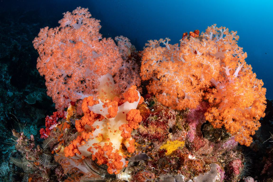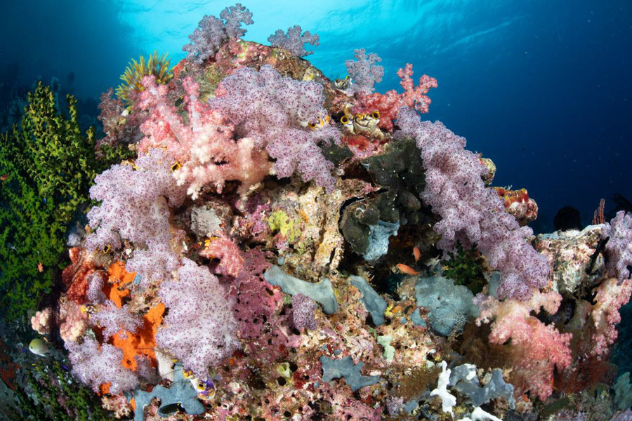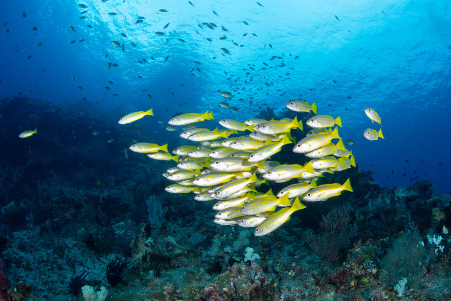 Le immersioni qui si concentrano su una serie di creste sottomarine che collegano l’isola principale a diverse isole circostanti più piccole e presentano grandi pinnacoli ricoperti di coralli ramificati.