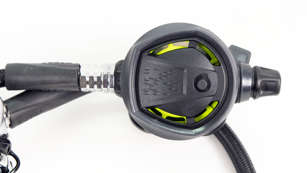 Il secondo stadio del Subea 900 è una chicca, dotato di due regolazioni laterali. Una leva dive/predive impedisce il flusso continuo di aria continuo che può capitare per esempio quando si entra in acqua. La seconda regolazione è una rotella che permette di regolare il flusso d’aria e agisce sulla molla del secondo stadio, consentendo di personalizzare l’effort inspiratorio in immersione per renderlo più morbido o più rigido.