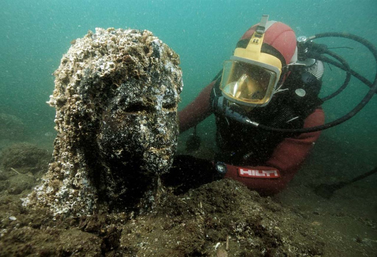 Da quasi trent’anni, il European Institute of Underwater Archaeology (IEASM), sotto la direzione di Franck Goddio, conduce campagne annuali di scavo nelle acque al largo di Alessandria. Questo progetto, nato dalla collaborazione con le autorità egiziane, ha permesso di riportare alla luce Thonis-Heracleion, un antico porto egiziano sommerso che per secoli è rimasto nascosto sotto il Mediterraneo.