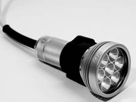 Torcia progettata specificamente per l’illuminazione di videosub e fotosub. La nuova tecnica a Led, permette di avere una qualità di luce, prestazioni e autonomia (4 ore al 100%) molto superiori ai sistemi d’illuminazione alogeni gia esistenti. La semplicità del suo design consente di ottenere un facile supporto per qualsiasi scafandro subacqueo contribuendo a mantenere un peso e volume minimo dell’equipaggiamento. E’ paragonabile a un’intensità pari a 50W alogeni, con una distribuzione di luce molto neutra (5000ºK), ampia e uniforme (parabola di 100°). Inoltre, un altro vantaggio di questo tipo di Led, è il mantenimento della colorazione della luce emessa anche quando la batteria è scarica, semplicemente ne viene diminuita la sua intensità.
