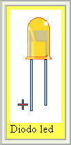 I LED hanno un terminale positivo ed uno negativo e, per funzionare, devono essere inseriti in circuito rispettando tale polarità; in genere il terminale positivo è quello più lungo, ma lo si può individuare con certezza osservando l’interno del LED in controluce: come si vede in figura, l’elettrodo positivo è sottile, a forma di lancia, mentre il negativo ha l’aspetto di una bandierina.