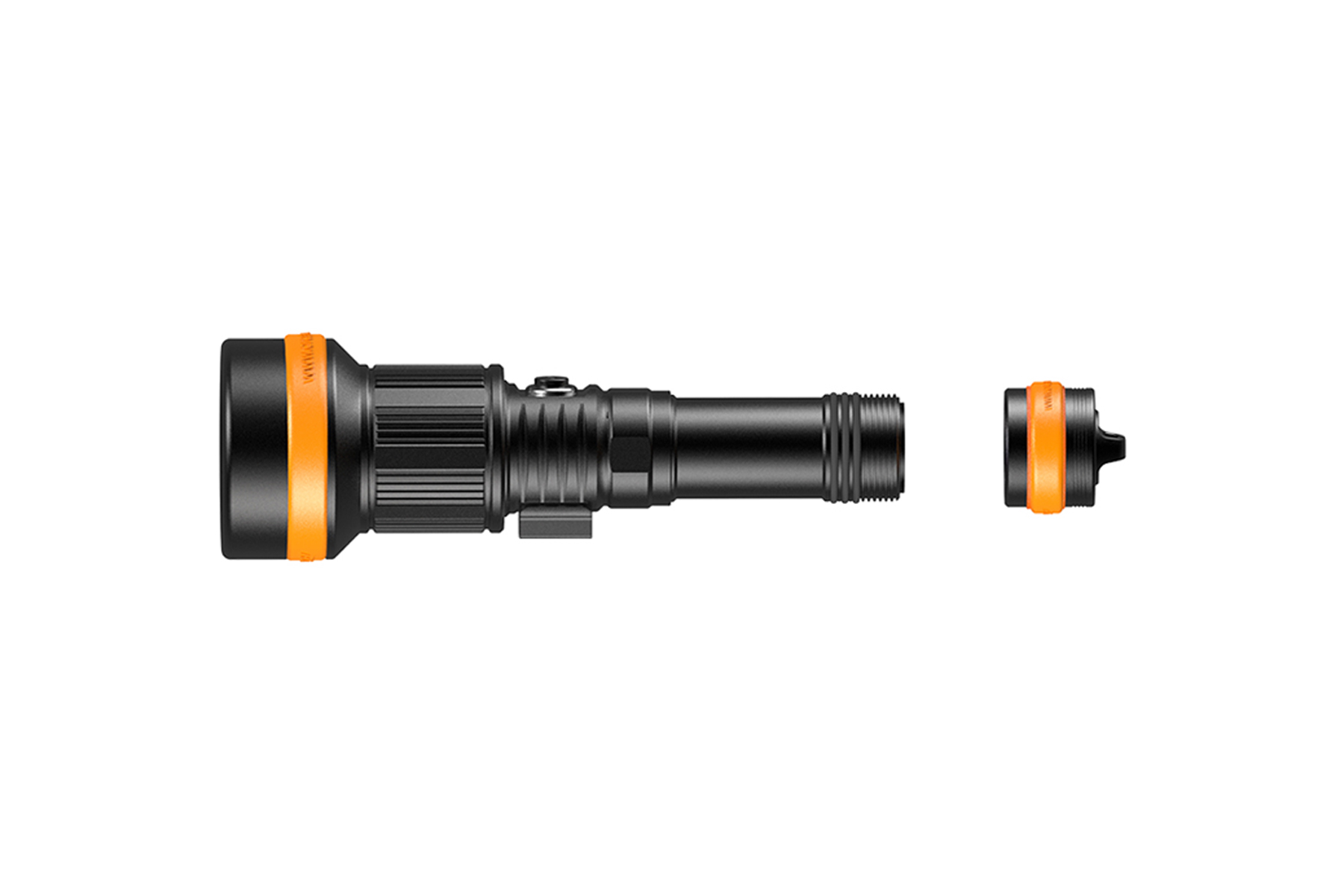 Con una portata fino a 920 metri e un’intensità massima di 212.000 cd, questa torcia assicura un’illuminazione potente e mirata, migliorando l’esperienza visiva sott’acqua. Il design della testa è stato perfezionato con una lente più piatta per un fascio ancora più uniforme rispetto alla versione precedente. Disponibile con accessori opzionali come cinturino da polso morbido e impugnatura rigida.