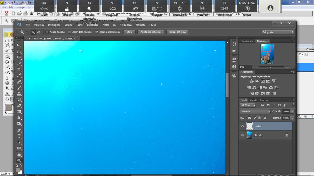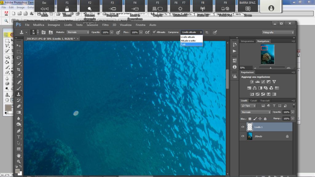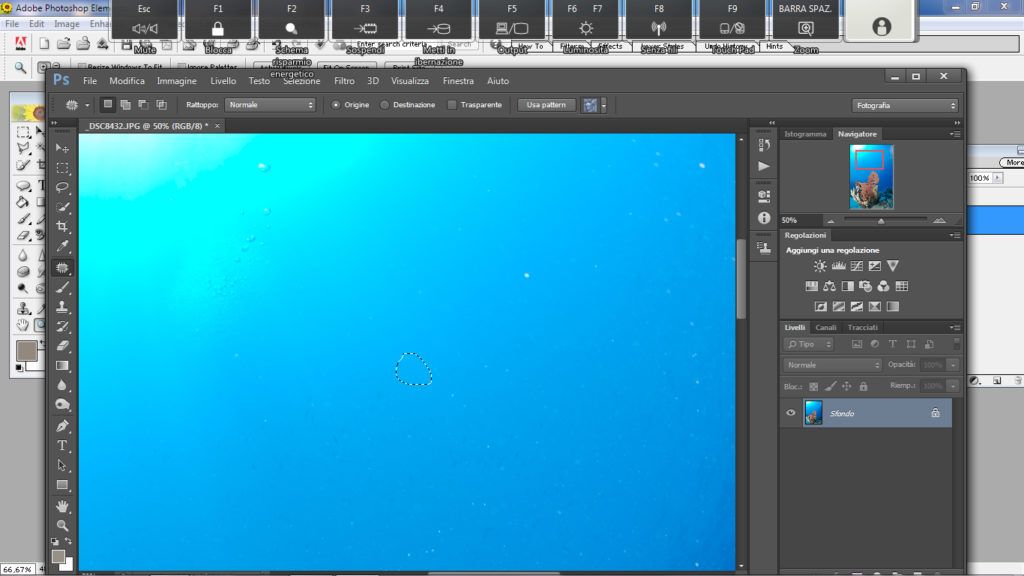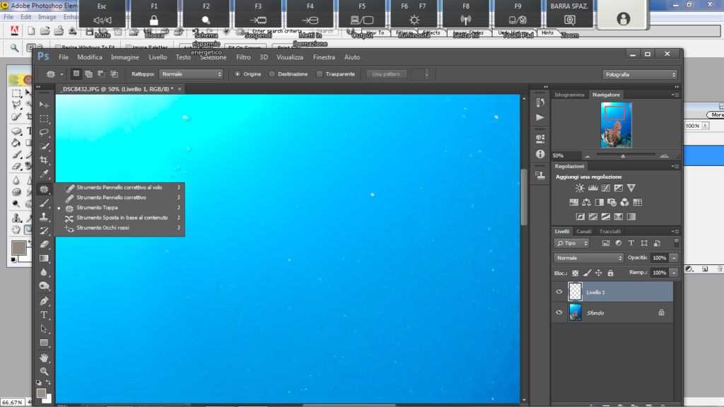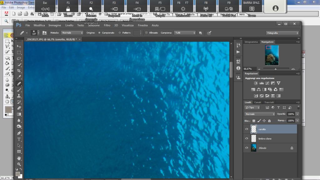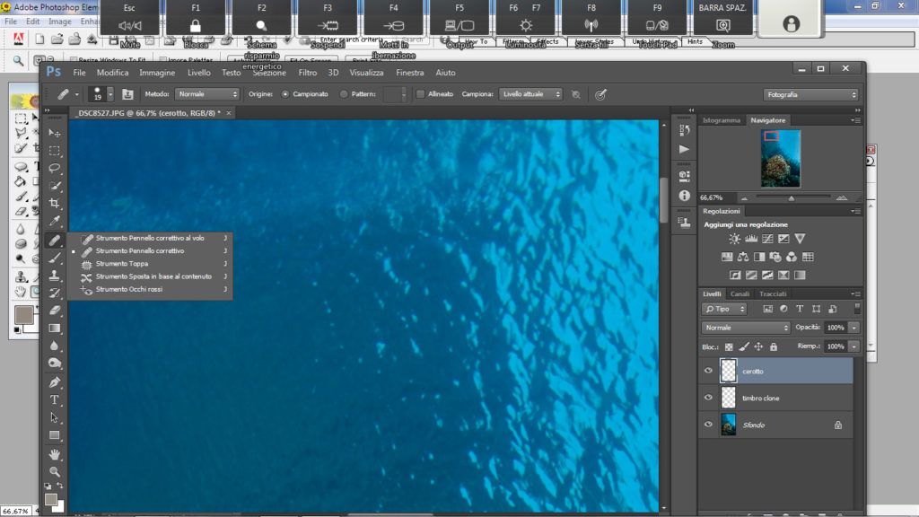 Questo strumento va bene se abbiamo sospensione a punti grandi e distanziati oppure un punto solo dell’immagine con sospensione e il resto pulito, ma soprattutto la sospensione deve essere localizzata sul blu del mare o comunque su uno sfondo omogeneo: nero, grigio, rosso e non uno sfondo dove sono presenti forme e colori vari.