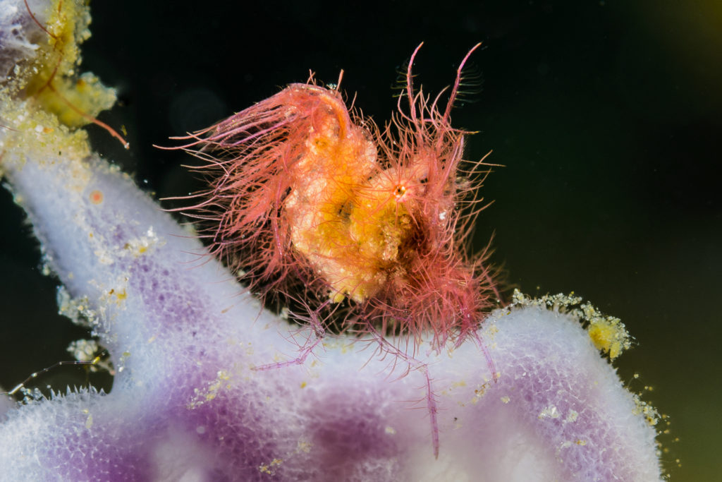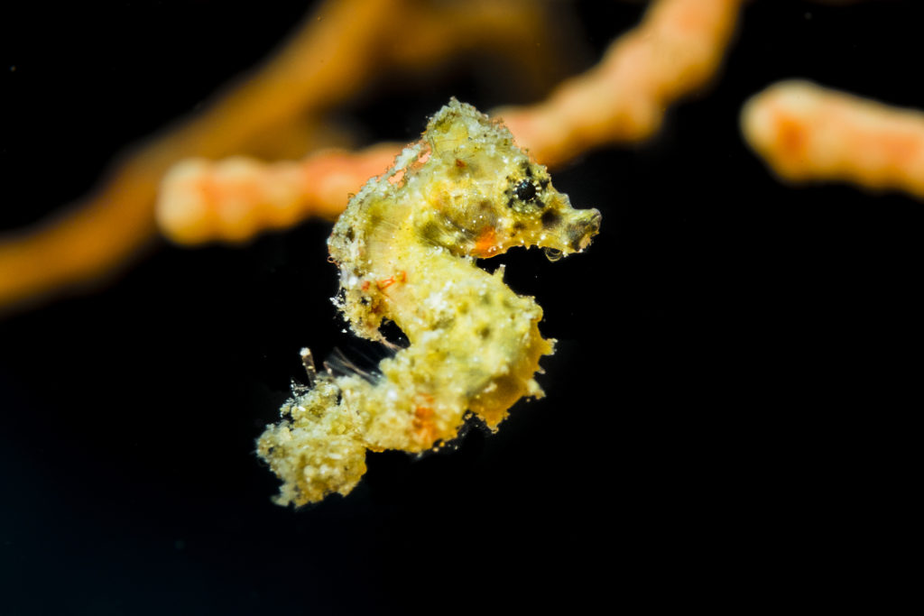 La biodiversità marina in Triton Bay è altissima, il che significa che quasi tutti i più rari ed elusivi critter che si possono trovare in Indonesia vivono anche qui. Gli occhi esperti delle guide del Triton Bay Divers, allenati tra Manado e lo stretto di Lembeh, sono costantemente alla ricerca di questi esseri criptici. Durante la mia permanenza la nostra guida, Andi, è riuscito a trovare quasi tutti i cavallucci marini pigmei descritti finora, e in una sola immersione. Abbiamo trovato invertebrati come il gamberetto peloso descritti di recente. Una menzione speciale la merita l’immersione all’house reef, dove nel pomeriggio un labride endemico si esibisce nel corteggiamento. Per attirare le femmine, i maschi dello spettacolare Paracheilinus nursalim si esibiscono mostrando in un “flash”, in una frazione di secondo, i colori vivaci delle pinne dorsale e anale, al culmine di un nuoto accelerato. Ecco un’altra sfida fotografica.