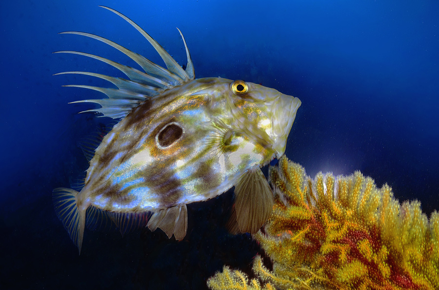 Come il pesce San Pietro, mimetizzato a regola d’arte tra le gorgonie, elegante nel nuoto  e invisibile ad un occhio poco allenato. Ancora più difficile da individuare, sempre per via del suo mimetismo, è la rana pescatrice, un pesce abituato a starsene acquattato sul fondo in attesa di una preda.