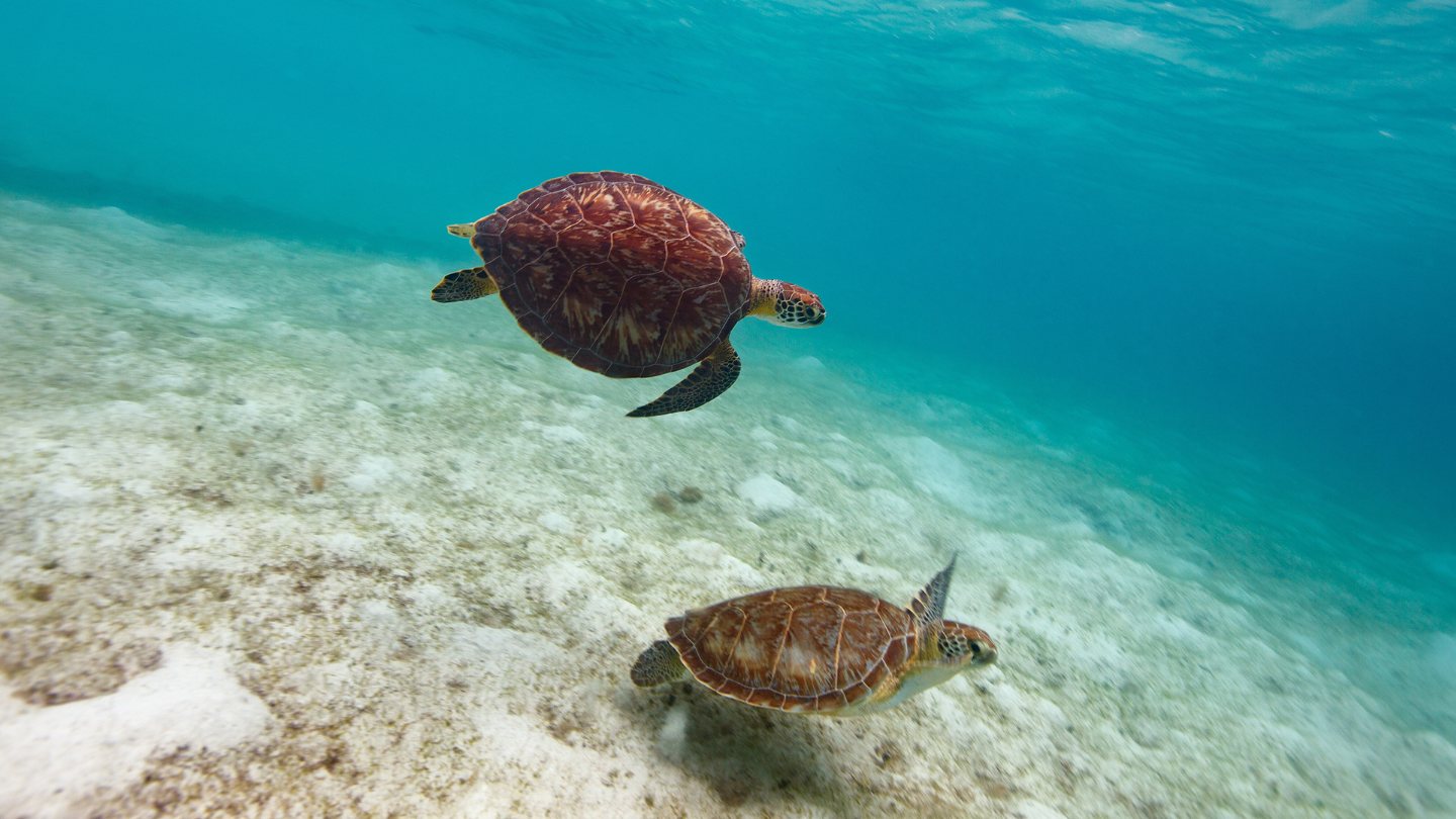 Mi ci sono voluti alcuni momenti per comprendere la scena: otto o dieci tartarughe giganti, ognuna di almeno 80 kg, nuotavano verso di noi “sgomitandosi” vigorosamente. Erano tutti maschi: la coda pronunciata ed i ganci sulle pinne anteriori, indispensabili per l’accoppiamento, non lasciavano dubbi. Arrivato più vicino a noi, il branco si è aperto ed ho visto la femmina: era, ovviamente, la più grande ed aveva un maschio strettamente aggrappato alla schiena con il depositante rannicchiato sotto di lei. Ecco cosa stavano facendo! Si contendevano la posizione!
