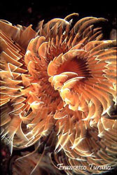 Uno dei soggetti ai quali dedicai la mia attenzione all’inizio della carriera di fotografo subacqueo fu un comune verme: lo spirografo. Un verme col ciuffo, molto bello. Un ciuffo di setole poste intorno alla bocca con una funzione ben precisa: afferrare al volo tutto ciò che può essere setacciato col passare delle masse d’acqua spostate dalle correnti.