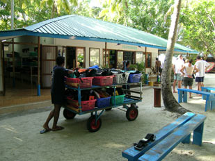 Niente scali con ore di attesa tra un volo e l’altro, niente pesanti valige da trascinare da un albergo ad un altro, ecc. Con un volo diretto da Malpensa di 8/9 ore e 30 minuti di idrovolante ti ritrovi direttamente nel tuo bel bungalow con le valige in camera. L’atmosfera è chiaramente paradisiaca, spiaggia bianca, palme, acqua cristallina e calda, il tutto perfetto per spaparanzarsi sotto una palma per schiacciare un pisolino o leggere un bel libro tra un immersione e l’altra.