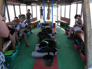 I diving sono spesso molto belli, ben attrezzati ampi e comodi, come barca per portarsi sul posto si usa il Doni, la barca locale, che sembra nata proprio per trasportare i sub. E’ molto larga, comoda e stabile. Il mare è difficilmente mosso, anzi quasi sempre è piatto come una tavola. Avvicinarsi al luogo di immersione con il cielo azzurro, l’acqua perfettamente calma e meravigliosamente limpida e calda è un già un vero piacere.