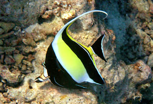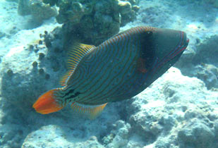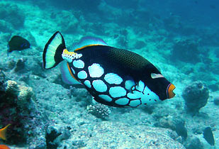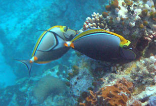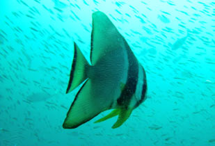 I pesci presenti sono una moltitudine di varietà, si va dai branchi già menzionati di Odonus niger a quelli (più in alto verso i dici metri) di Anthias un po’ come in Mar rosso, e vari pesci solitari tra i quali sicuramente i più vistosi sono i Cospicillum, gli Imperator, gli Zanclus, i Pygoplites, gli Xanthometopom, i Leocosternon ed un infinità di altri.