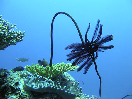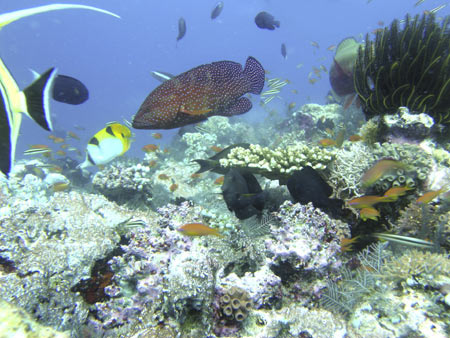 Sotto i venti metri infatti gli effetti devastanti de El Niño non si sono fatti sentire e tutto è rimasto perfettamente integro. Oltre alle Acropore che erano le uniche colonizzatrici sopra i 15/10 metri sono presenti inoltre coralli molli come Sarcophyton e Sinularia, Anemoni con i loro pagliacci, enormi Tridacna, Crinoidi di vari colori, Sclerattinie semidure e Zoantiniari, ma soprattutto splendide Gorgonie ancorate sotto le grotte ed una gran quantità di Dendronephtya con colori che vanno dal giallo al rosso al viola. L’unico punto deludente (se così si vuol chiamare) è la scarsa presenza di organismi (gasteropodi, crostacei, echinodermi, ecc) simbionti o commensali su Crinoidi o Antozoi molto comuni invece in altri mari dell’Oceano indiano (ad esempio in Indonesia).