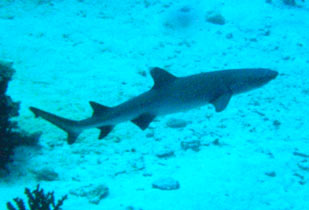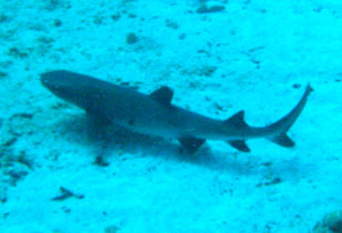 Uno squaletto di barriera pinna bianca che prima di essere disturbato dalla mia presenza si era adagiato sul fondale