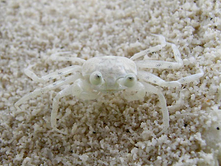 I granchi sulla spiaggia percepiscono il movimento e al minimo pericolo corrono a velocità prossima a quella della luce nelle loro tane. Tutti tranne questo minigranchio di circa un cm che per fortuna, convinto di essersi perfettamente mimetizzato tra la sabbia, si è lasciato fotografare. |