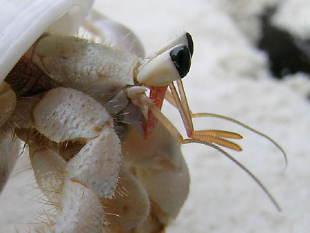 Un paguro sorpreso mentre si aggirava sulla spiaggia. Credo di non aver mai visto una faccia più buffa… |