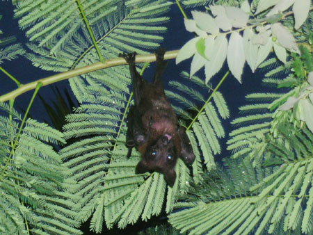 Davvero simpatici questi animali, a differenza degli altri Chirotteri che hanno il muso schiacciato e larghe orecchie, questi hanno un musetto grazioso simile a quello di una volpe o di un piccolo cane. Se ti avvicini a loro mentre stanno a testa in giù, ti fissano un po’ timorosi con i loro occhi a palla ma non volano via, anzi continuano tranquillamente a masticare con il muso piegato su un lato i loro succosi frutti. Forse, col tempo hanno capito che dopotutto i turisti sono animali innocui…