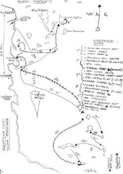 Atterrati a Hurgada troviamo puntualissimi ad accoglierci i ragazzi della C.d.M.R., che ci accompagnano senza por tempo in mezzo alla barca. Qui arrivati facciamo conoscenza con Katia, la nostra guida che ci accompagnerà in questa settimana di immersioni, e con i nostri compagni di viaggio: siamo in tutto 10, 7 italiani e 3 belgi, tutti per fortuna molto cordiali ed aperti: è la mia prima crociera sub e il mio timore era che, costretti in spazi limitati, potessero sorgere tensioni e dissapori, invece pare che siamo stati fortunati, perché la compagnia è piacevole e la settimana si prospetta estremamente gradevole. Dopo un breve briefing sull’uso degli spazi a bordo, sulle regole (poche, per la verità) e gli orari, dopo aver sistemato l’attrezzatura negli spazi assegnati, Katia (il Capo) ci dà il permesso di andare a nanna…nel frattempo si son fatte le due!.
