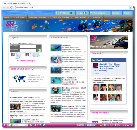 E’ on-line da pochi giorni il nuovo portale web di SSI Italia, www.divessi.com con una veste grafica più moderna e nuove funzionalità legate ai social network più gettonati come Facebook, Twitter e You tube. In evidenza l’area riservata per i Dive Professional, le principali notizie dal mondo SSI e gli eventi presenti e futuri programmati dai Centri SSI affiliati.