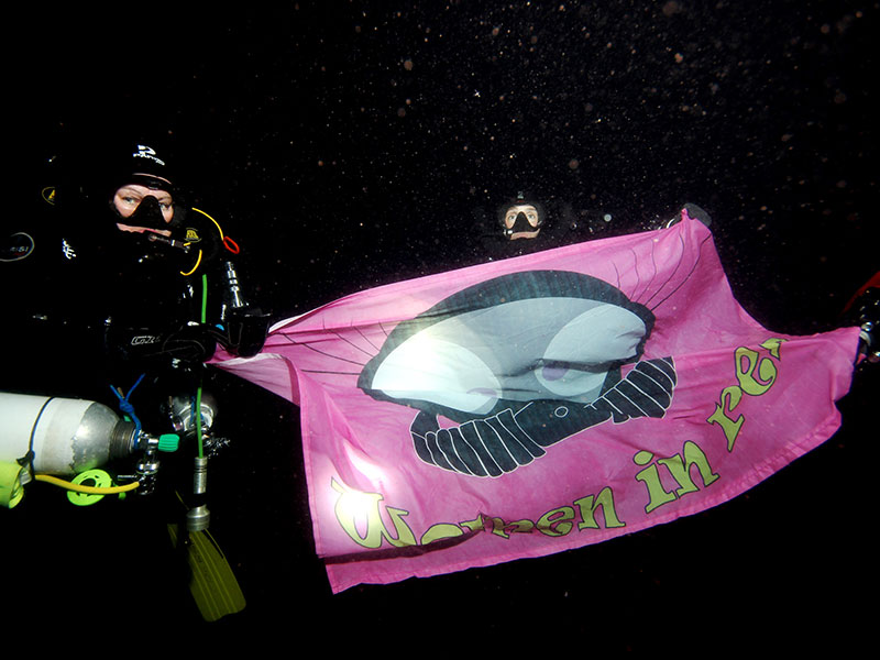 Per la seconda volta la bandiera di women in reb è stata stesa sott’acqua.