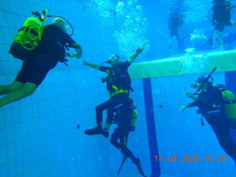 In piscina eravamo presenti anche noi di Pianeta Azzurro, in qualità di media partner dell’evento e siamo stati subito accolti da una squadra di giovani iscritti di Onda Sub, tutti con la maglietta arancione della Scuba Association.